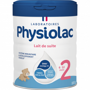 Physiolac 2 est destiné aux bébés de 6 à 12 mois. Fabriqué à base de lait écrémé 100% français, il contient du fer, du zinc et de la vitamine C pour contribuer au maintien du bon fonctionnement du système immunitaire.
