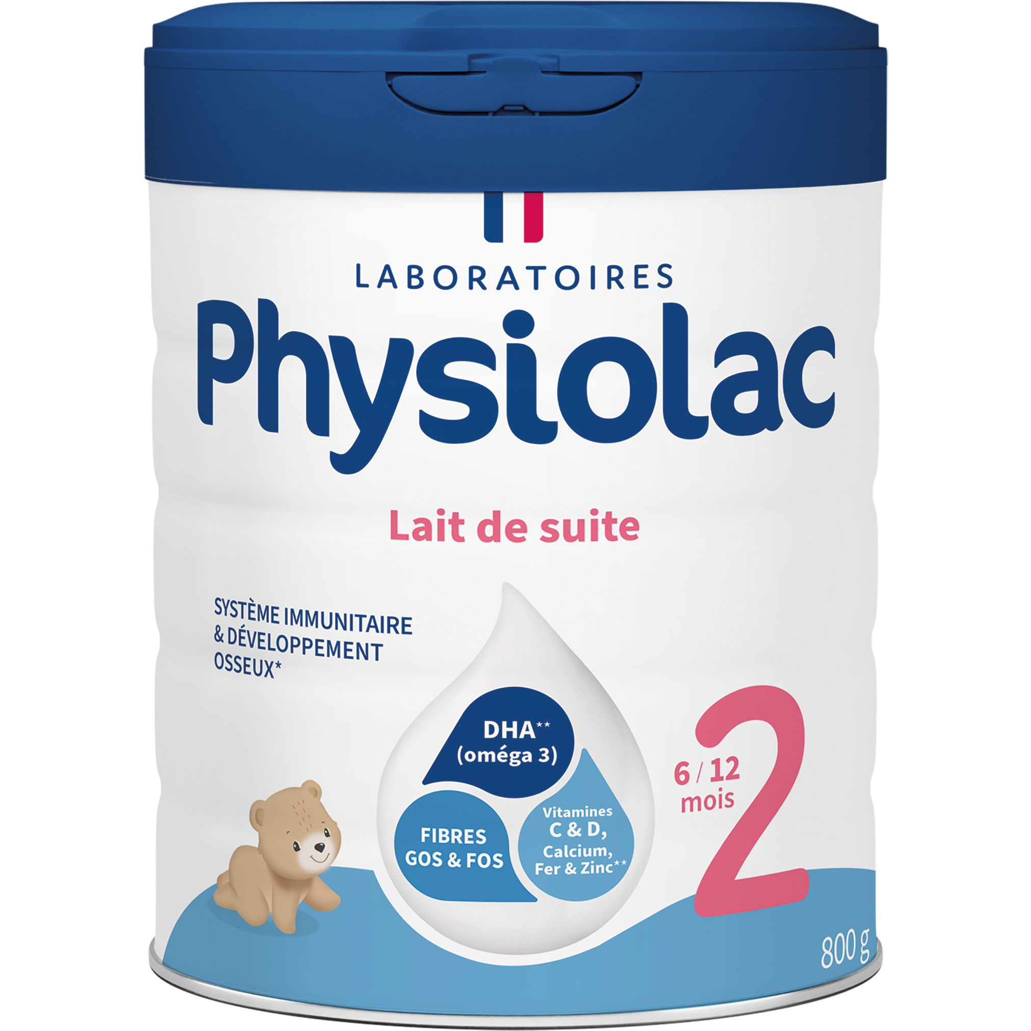 Avis important : Le lait maternel est le meilleur aliment pour le nourrisson. En accord avec votre pharmacien ou votre médecin, Physiolac 2 peut s’y substituer ou le compléter si vous ne pouvez pas ou ne souhaitez pas allaiter. Physiolac 2 répond aux besoins nutritionnels spécifiques du nourrisson à partir de 6 mois. Ne changez pas ce lait de suite sans l’avis de votre pharmacien ou de votre médecin. Ce produit est un élément d’une alimentation diversifiée des nourrissons à partir de 6 mois et ne peut remplacer le lait maternel pendant les 6 premiers mois de la vie. La décision d’introduire des aliments complémentaires doit être prise sur l’avis des professionnels de santé.